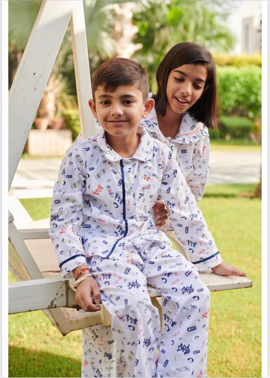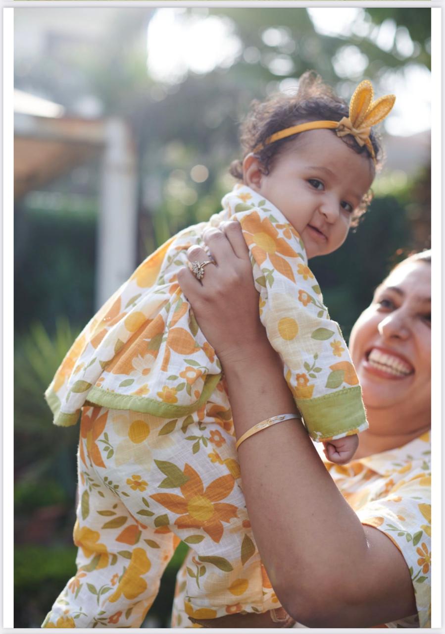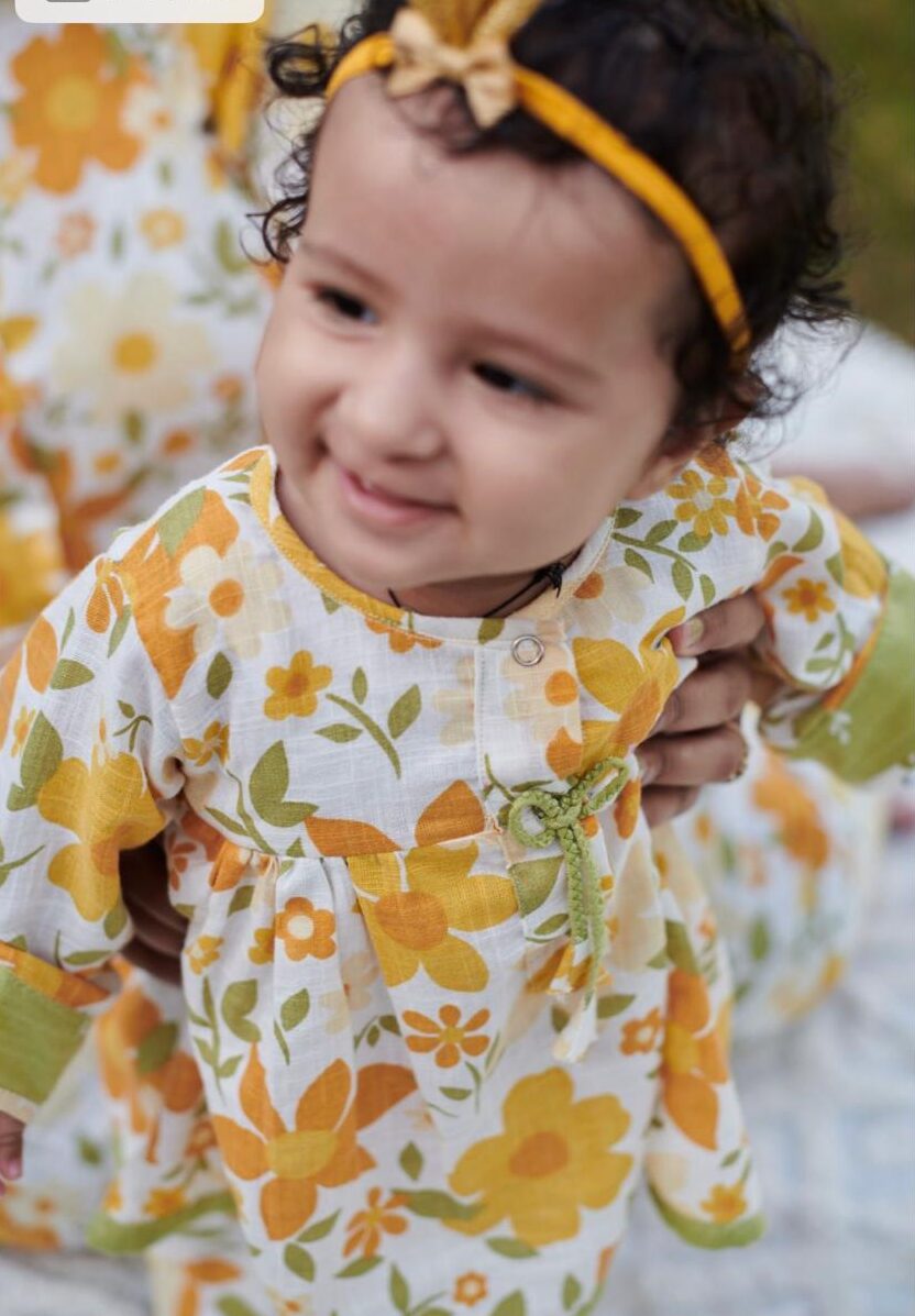 Baby Cotton Night Suit Set – Honeybee & Sunflower Print Shirt & Pajama