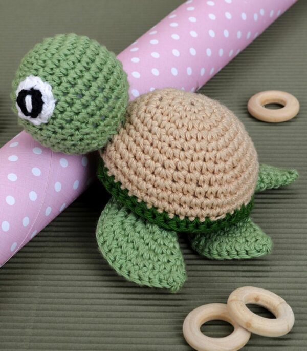 This cute crochet turtle is the perfect blend of charm and craftsmanship! Carefully handmade with soft, eco-friendly yarn, it features a cozy beige shell, sweet green flippers, and an expressive little face. Ideal as a nursery decoration, baby shower gift, or a cuddly friend for little ones, this amigurumi turtle adds a touch of whimsy to any space. Safe, lightweight, and huggable – it’s ready to be loved!